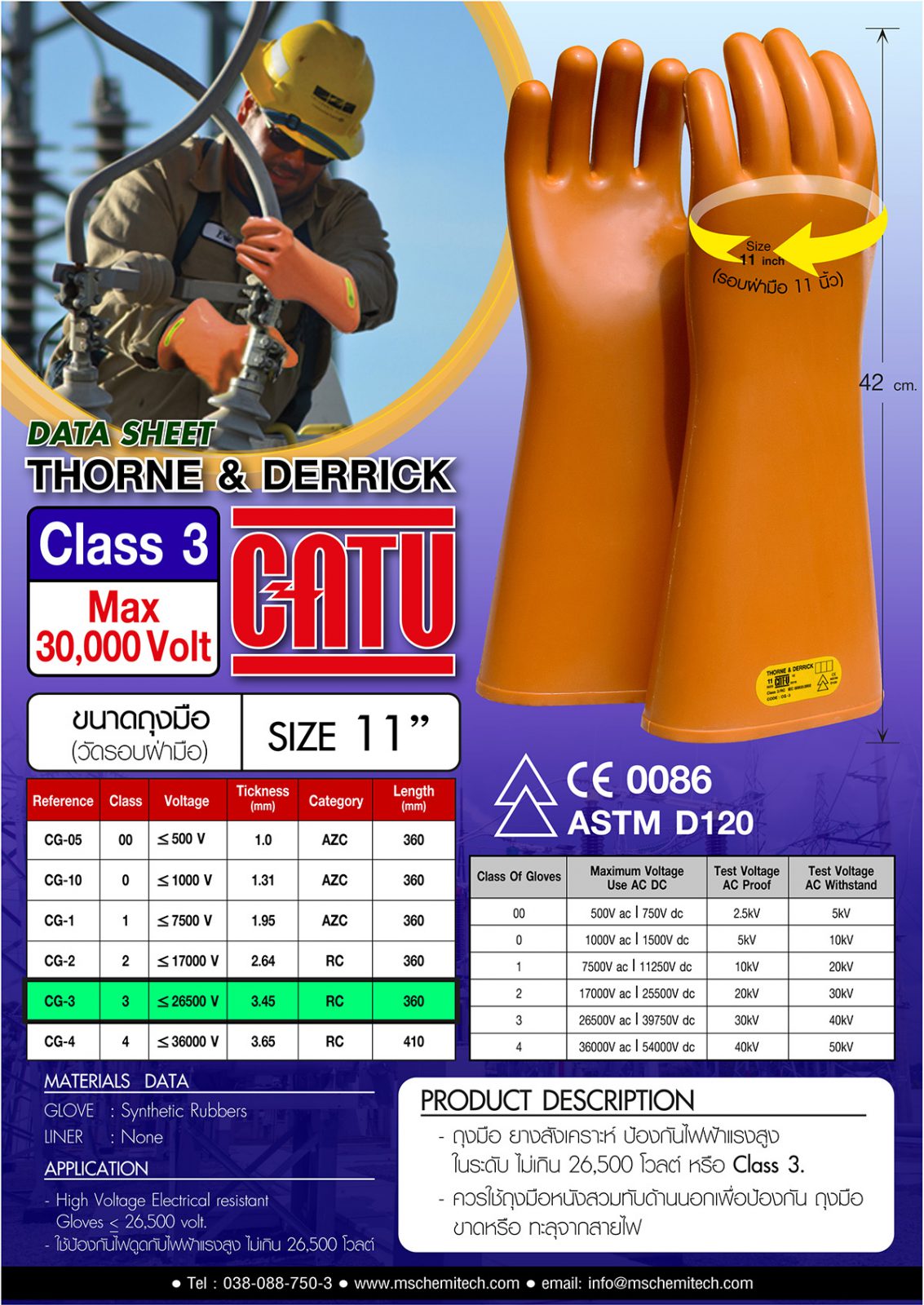 04 Electric Gloveถุงมือกันไฟฟ้าดูด Class 3 (26,500 Volt /26 kV Max 30,000 Volt)